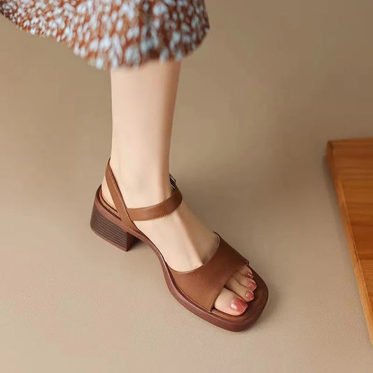 Sarena – Retro Vierkante Teen Franse Sandalen